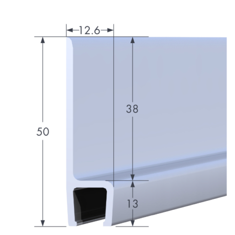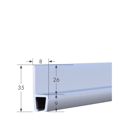 Mill-finish extruded aluminium carrier with a 180° angle. Ideal for mounting strip brushes in straight configurations, offering a clean and stable installation.